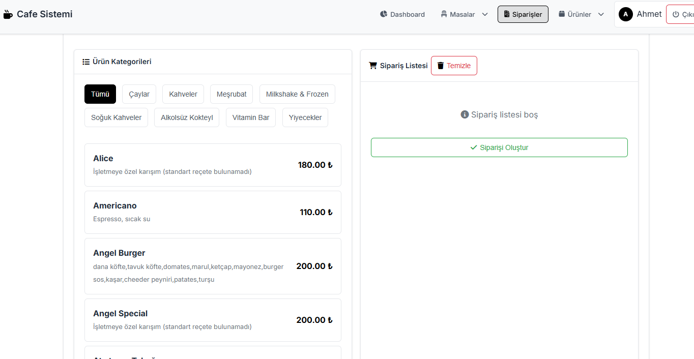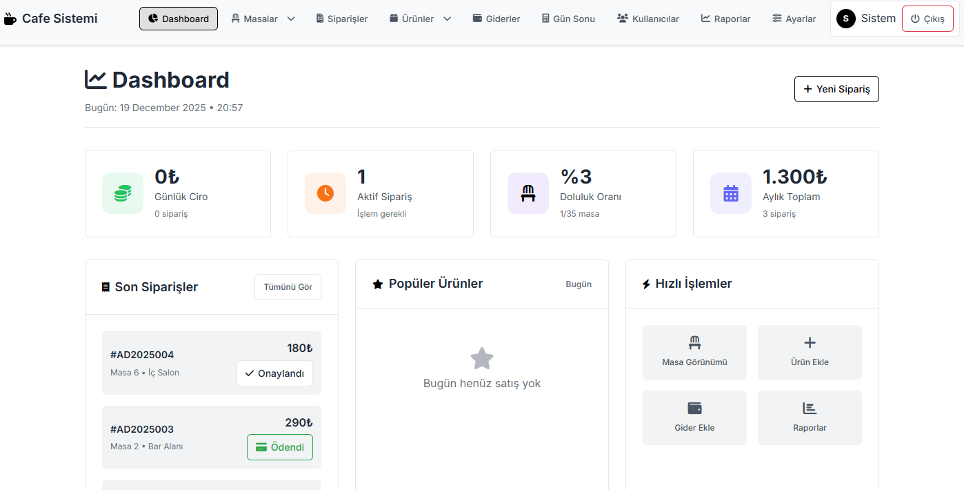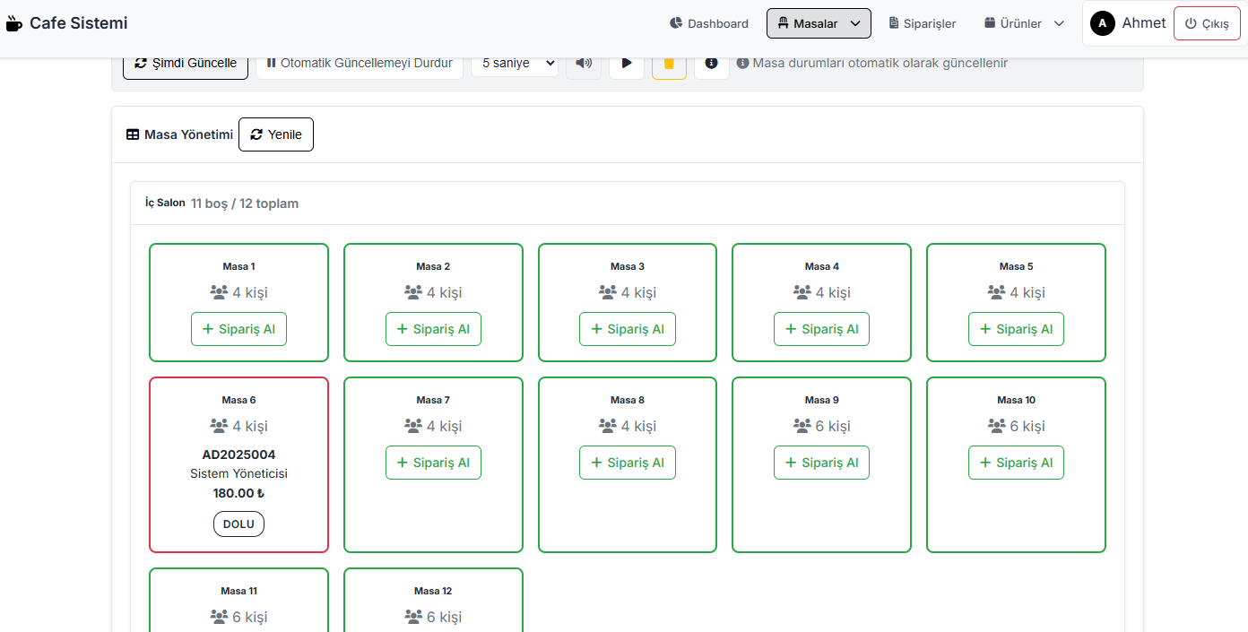 Restoran ve kafelerin yönetim masa düzenleri, verilen sipariş ve genel muhasebe işlem programı