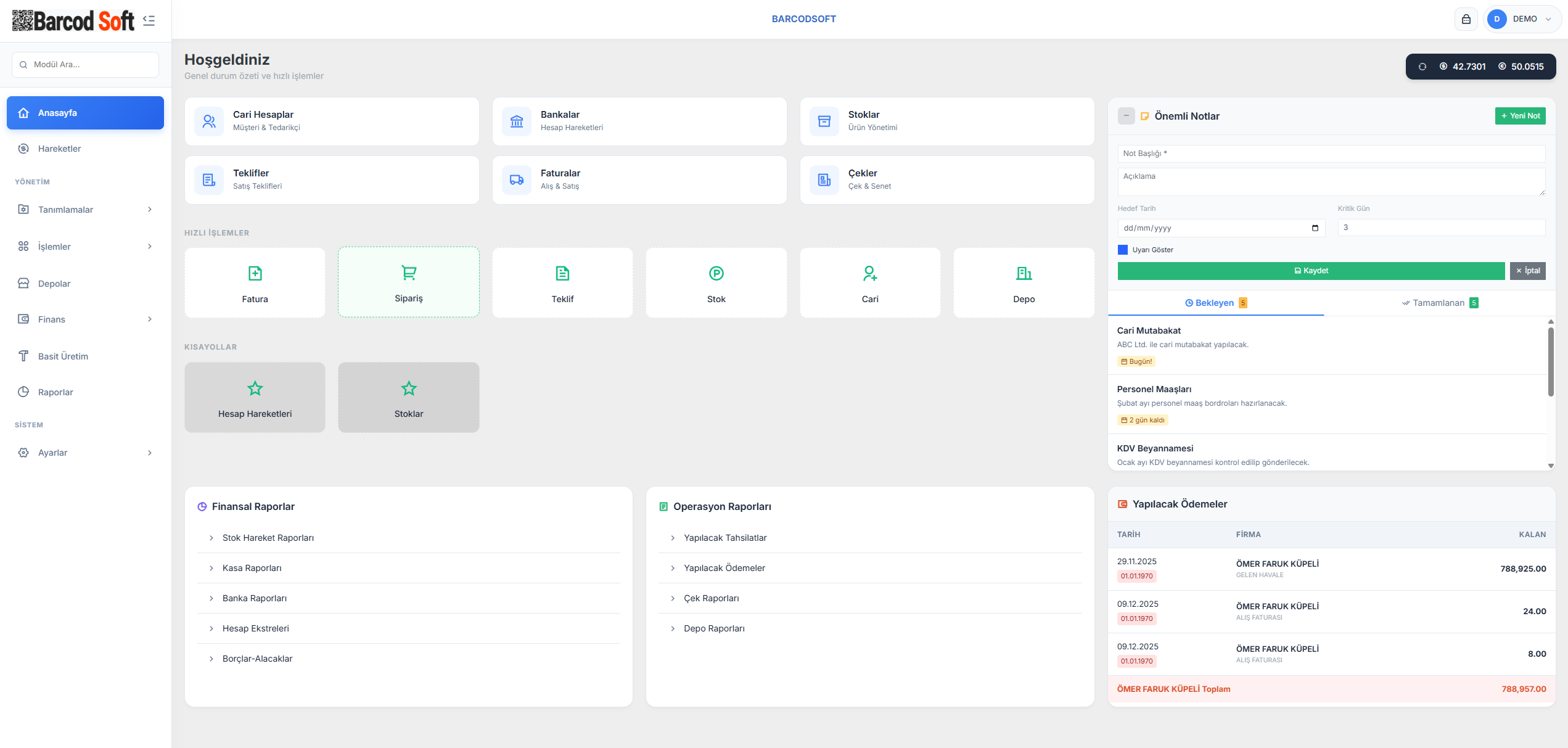 Esnaf kullanımına uygun, pratik ve minimum adımla işlem yapılmasını sağlayan hızlı ekranlar sunar.