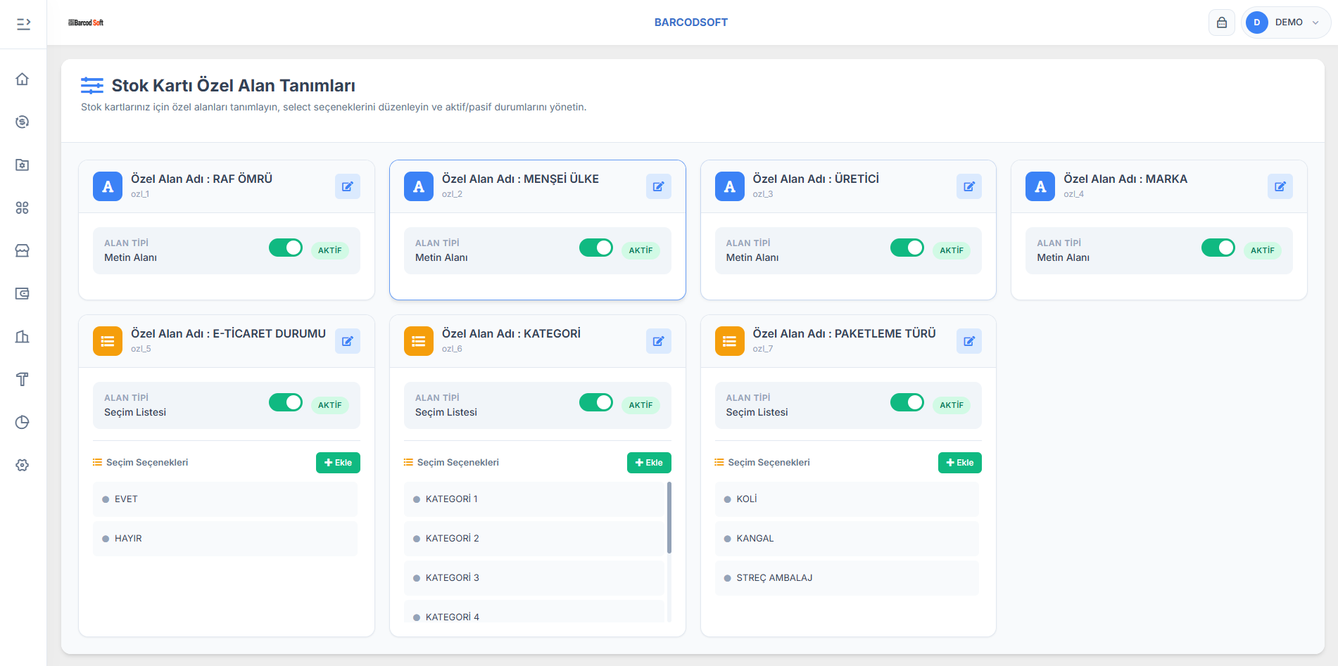 - Etiket / stok / barkod tasarım ekranı: